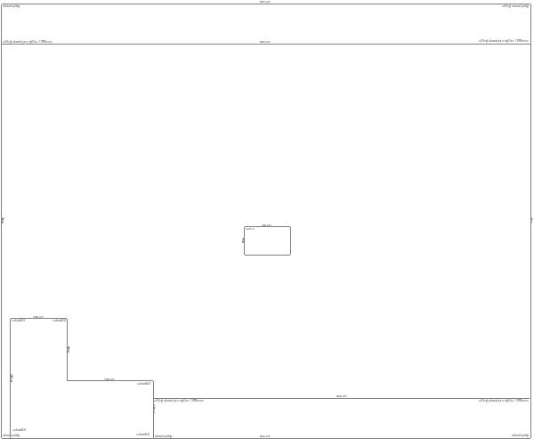 Obrysový plánek půdy, s dispozicí zachycující umístění schodiště, komína a použitelného obrysu, protože půda má sedlovou střechu.